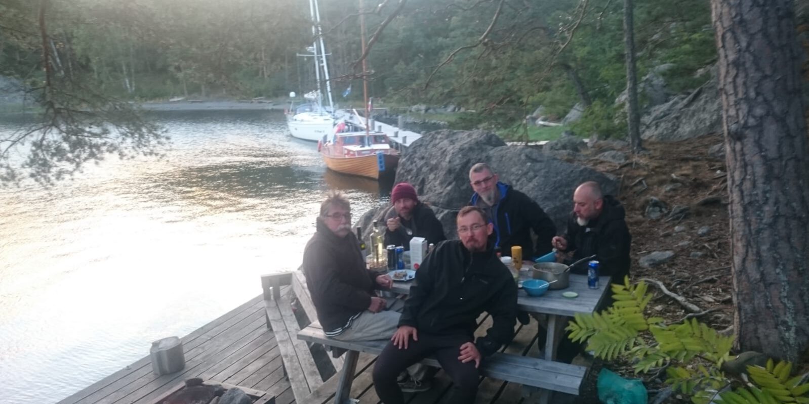 Sie stellen sich vor, Norman, Peter, Peter, Thomek, Krztof. Wir unterhalten uns auf Englisch. Die Jungs, alle ca. 40 Jahre alt, sind nach Schweden gekommen, um zu Segeln für eine Woche. Bis auf den einen Peter der lebt als Skipper hier in Schweden oder irgendwo und bewacht das Holzboot.